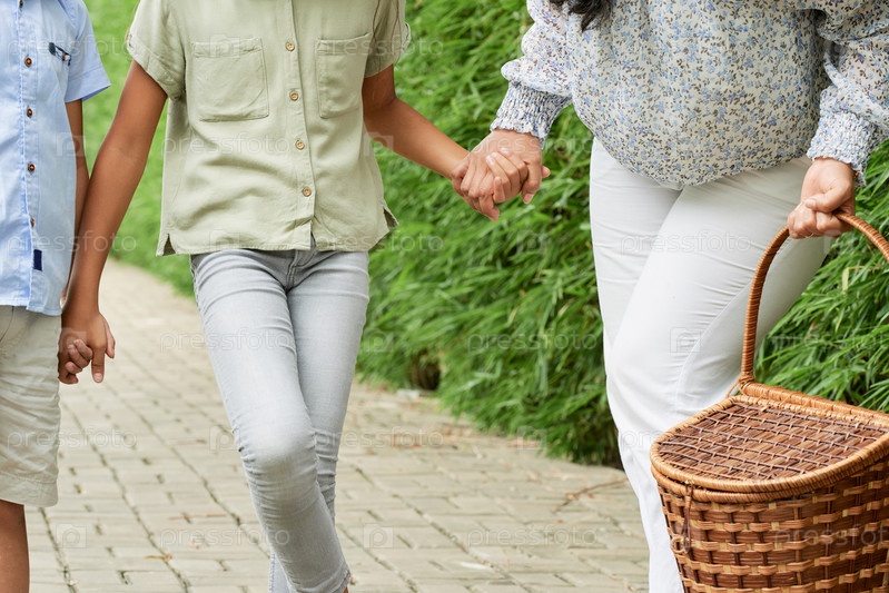 Мать берет детей на пикник
