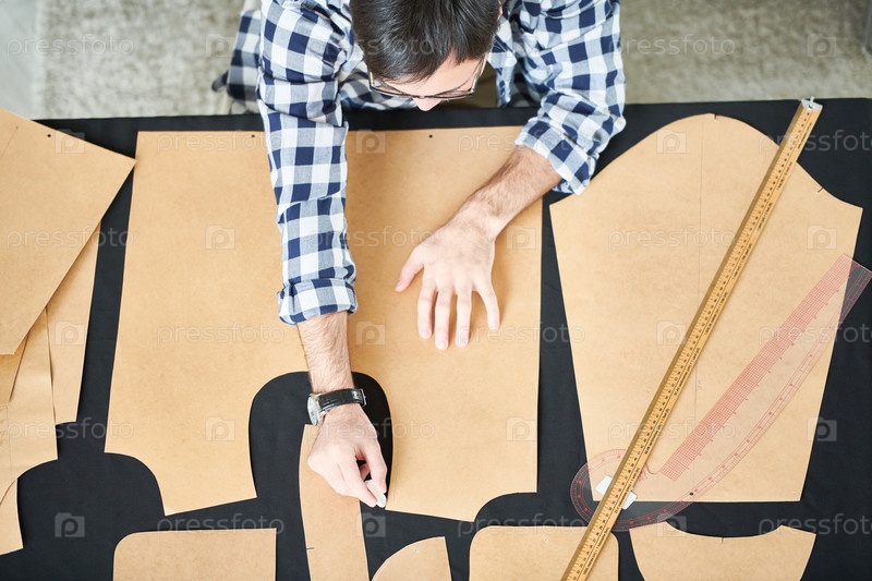 Мужчина наносит узоры одежды на текстиль