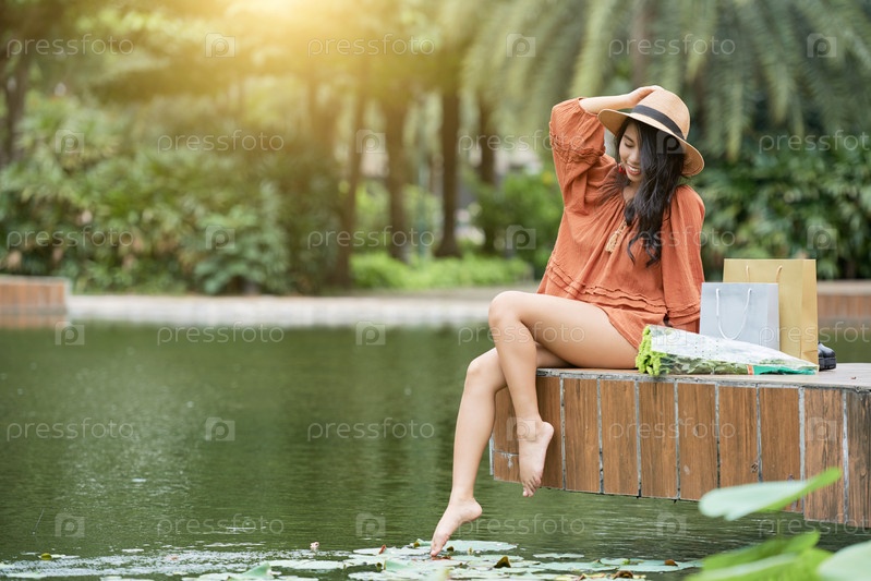 Молодая женщина проводит день в парке