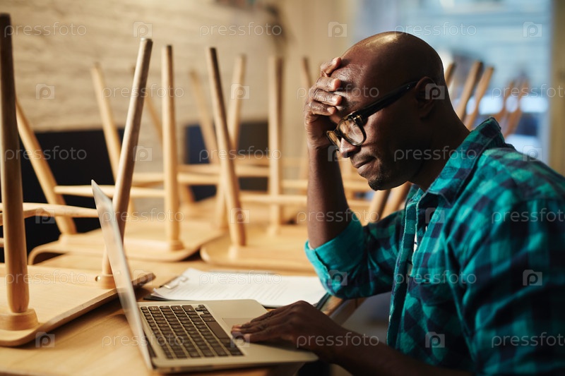Мужчина, работающий в закрытом кафе