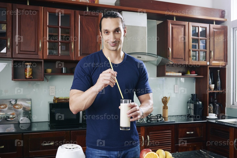 Веселый мужчина с молочным коктейлем