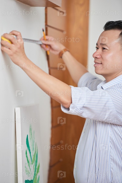Человек, измеряющий стену