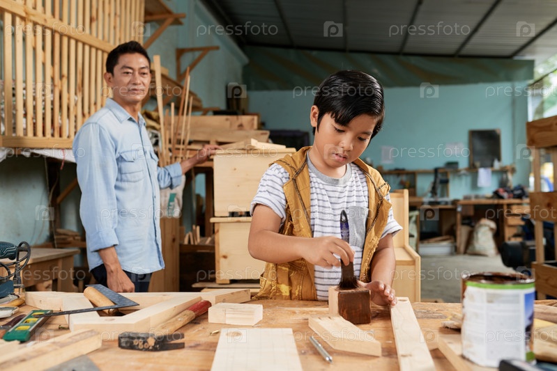 Мальчик помогает отцу