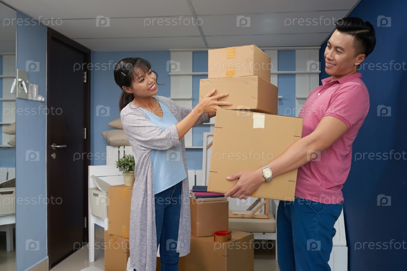 Любящая пара упаковывает домашние вещи