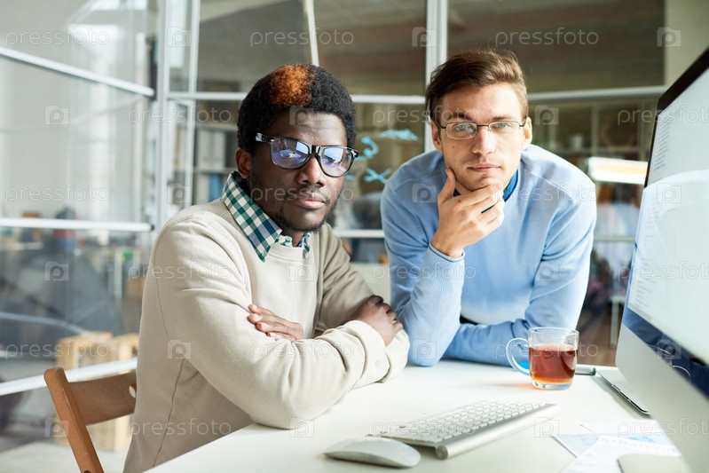 Молодые коллеги позируют для фотографии