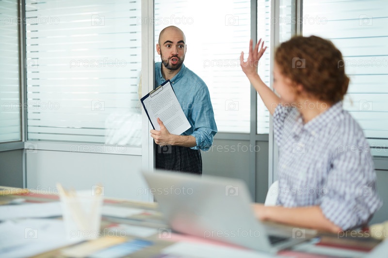 Ошеломленный помощник с документами врывается в кабинет менеджера