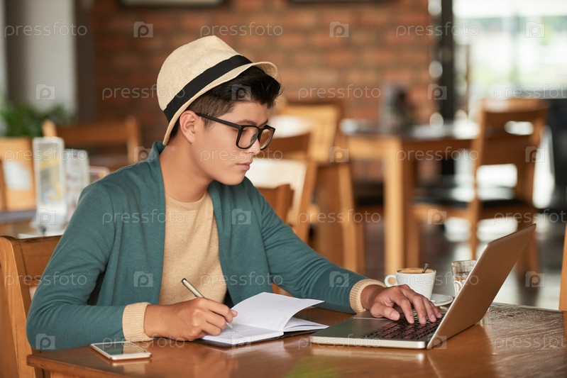 Мужчина учится в кафе