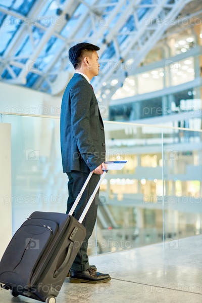 Азиатский бизнесмен, несущий чемодан