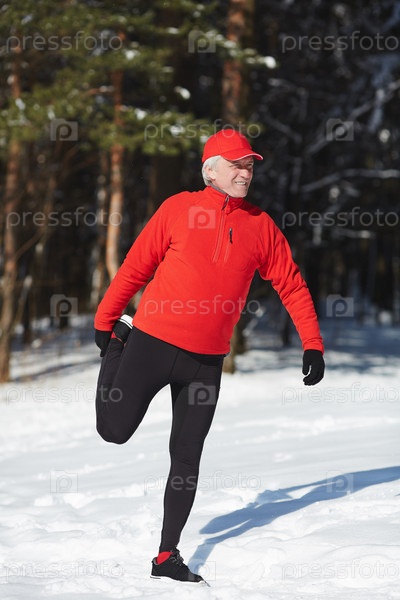 Человек, тренирующийся на снежном дрейфе