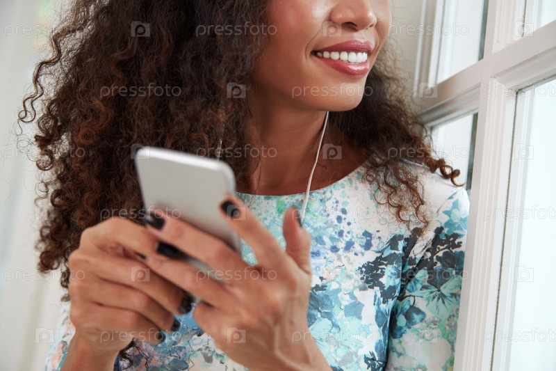 Женщина слушает музыку на наушниках