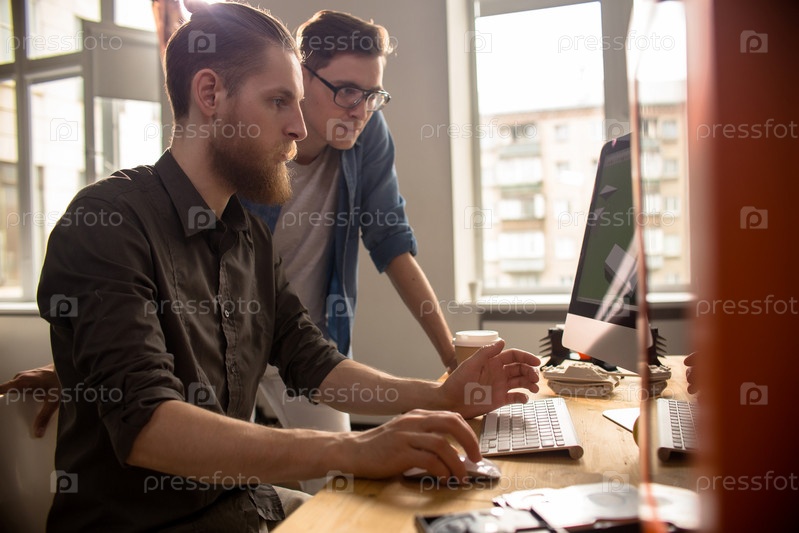 Два молодых человека, работающих с компьютером