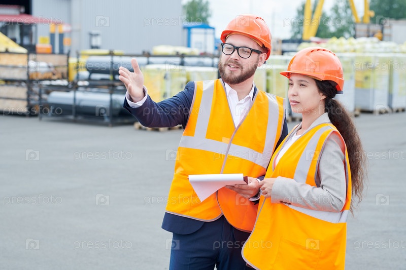 Строительный бригадир дает инструкции рабочему