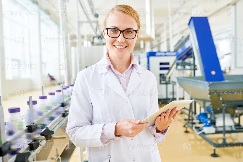 Улыбающийся инспектор на фабрике соевого молока