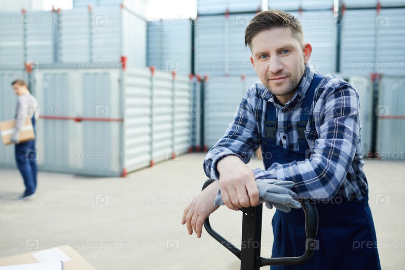 Содержание грузового рабочего против больших контейнеров