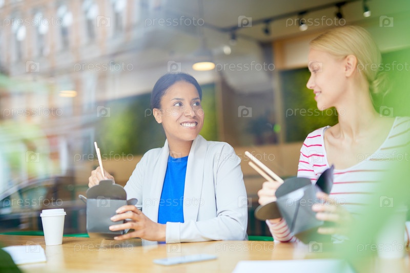 Девушки разговаривают во время обеда