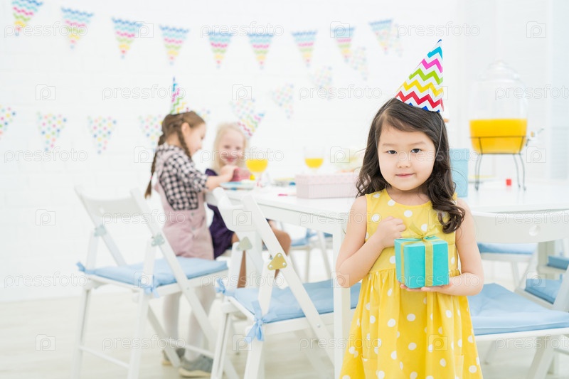 Азиатская девушка с коробкой подарков Content
