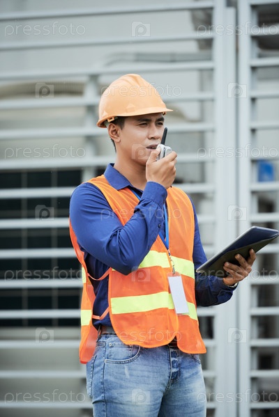 Азиатский инженер, выступающий по радио