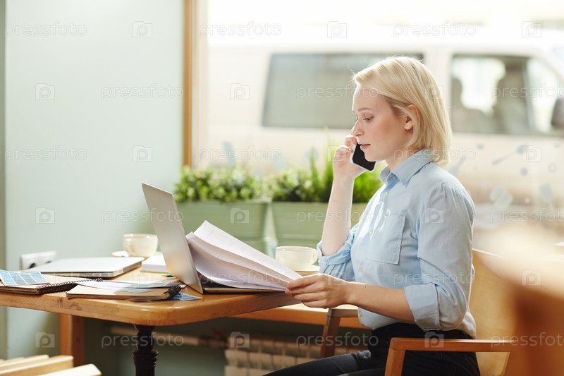 Деловая женщина, разговаривающая по телефону