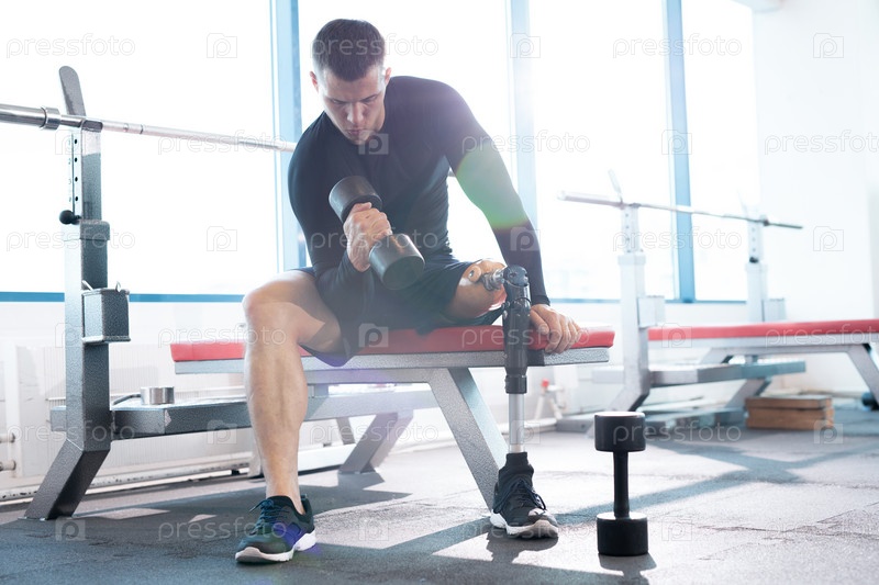 Мускулистый мужчина с гантельками