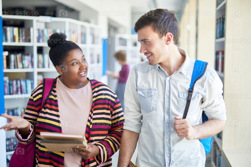 Любопытные студенты обсуждают список книг