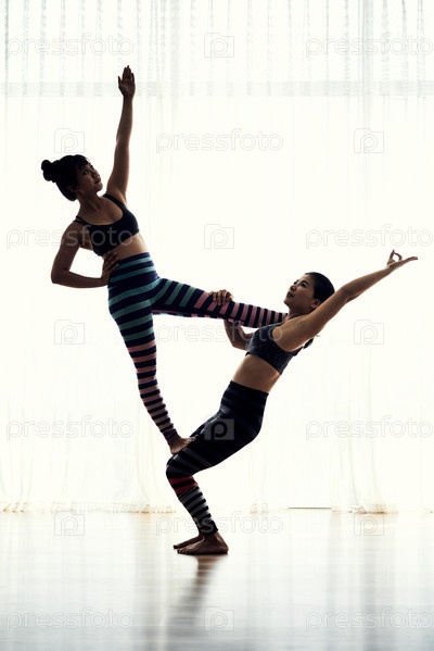Подходящая молодая самка Acroyogis практикует позу флага