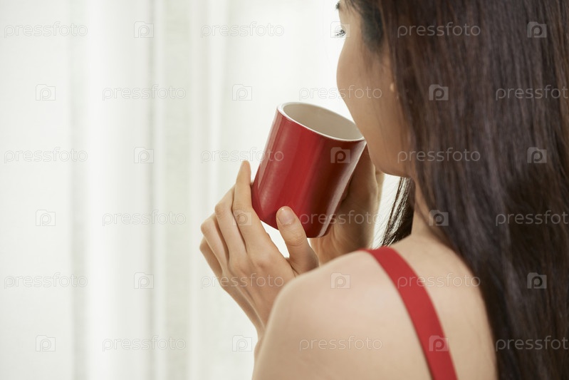 Женщина пьет кофе