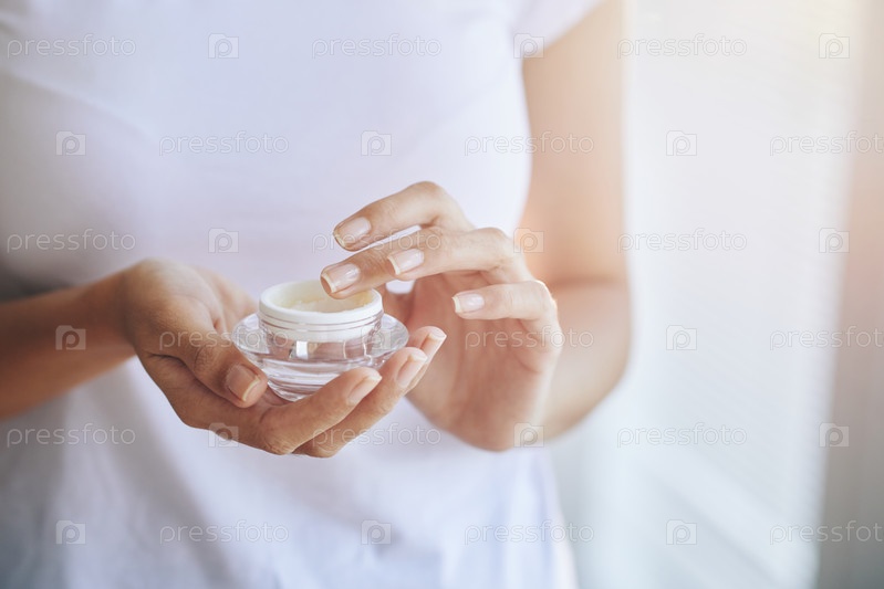 Женщина с урожаем держит крем для лица