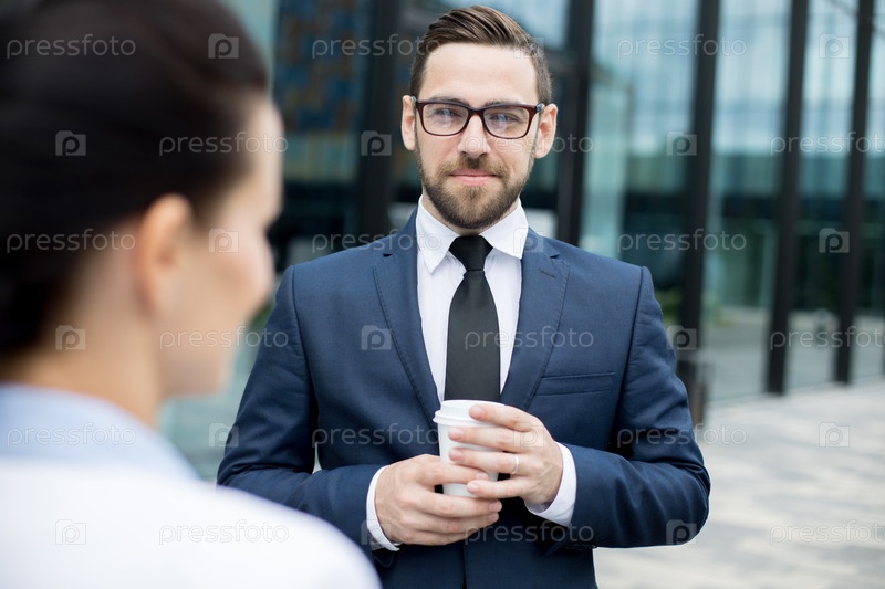 Мужчина держит чашку горячего напитка за женщиной