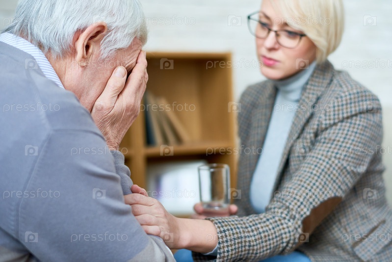 Феминистка-терапевт утешает старшего пациента