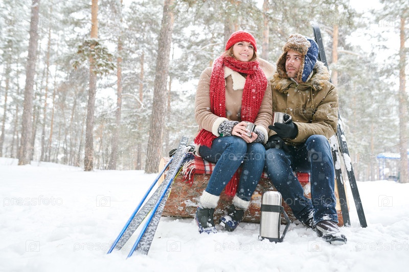 Пара, отдыхающая на лыжах