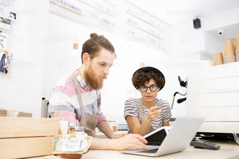 Предприниматели малого бизнеса анализируют продажи в собственном кафе