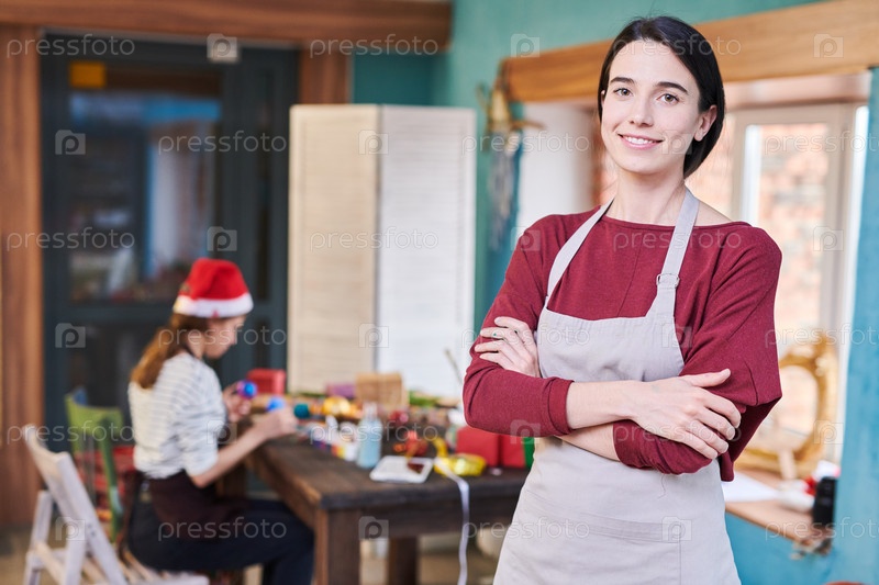 Художница-женщина в мастерской