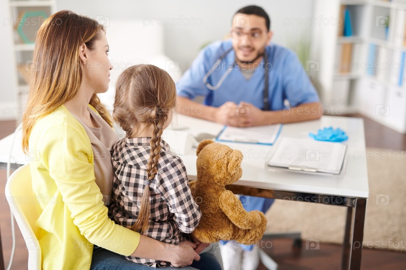 Мать с маленькой девочкой в кабинете врача