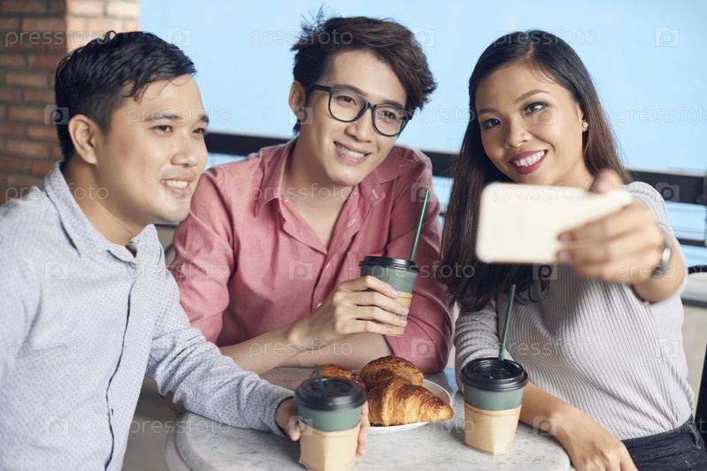Современные этнические коллеги, делающие селфи