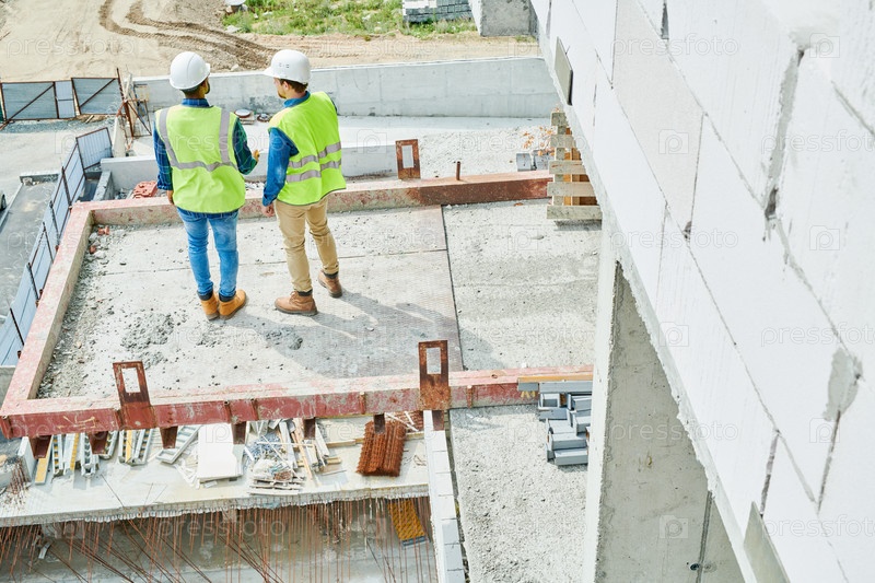 Строители, работающие над новым современным домом