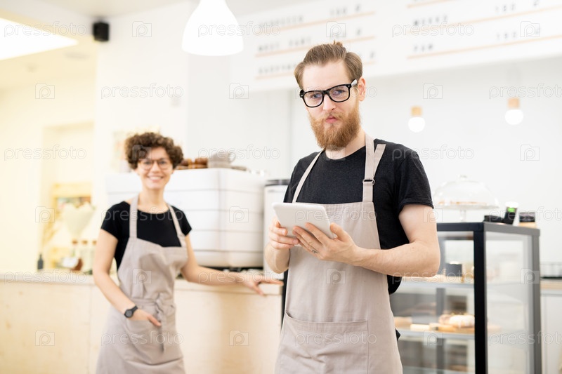 Молодой официант в кафе Content