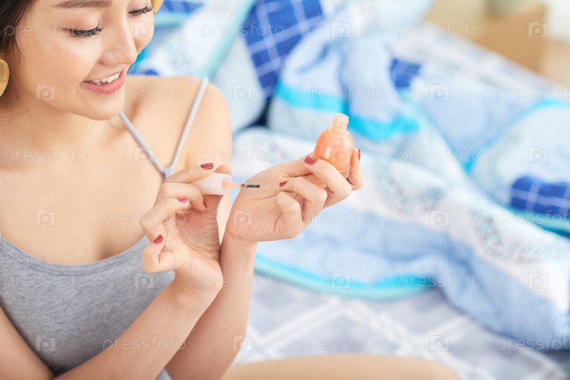 Посадка азиатская женщина, рисующая ногти