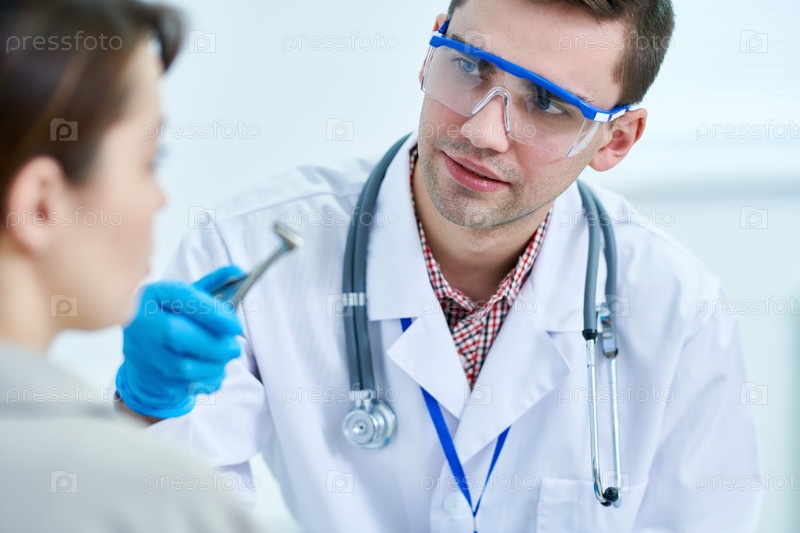 Оториноларинголог осматривает пациента