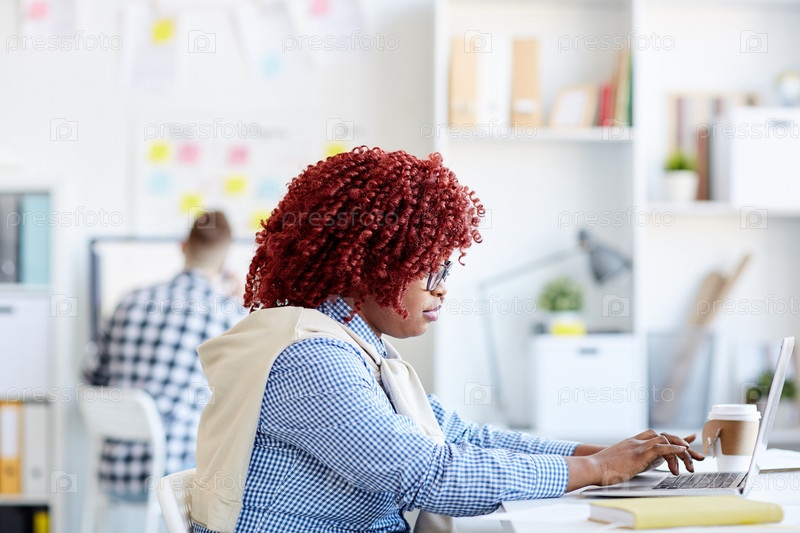 Черная женщина, работающая в офисе