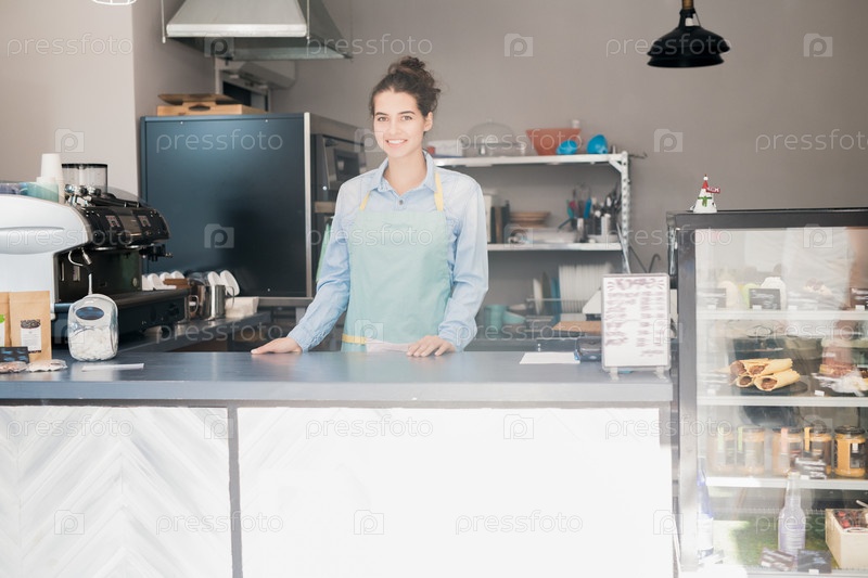 Улыбающийся лавочник за прилавком
