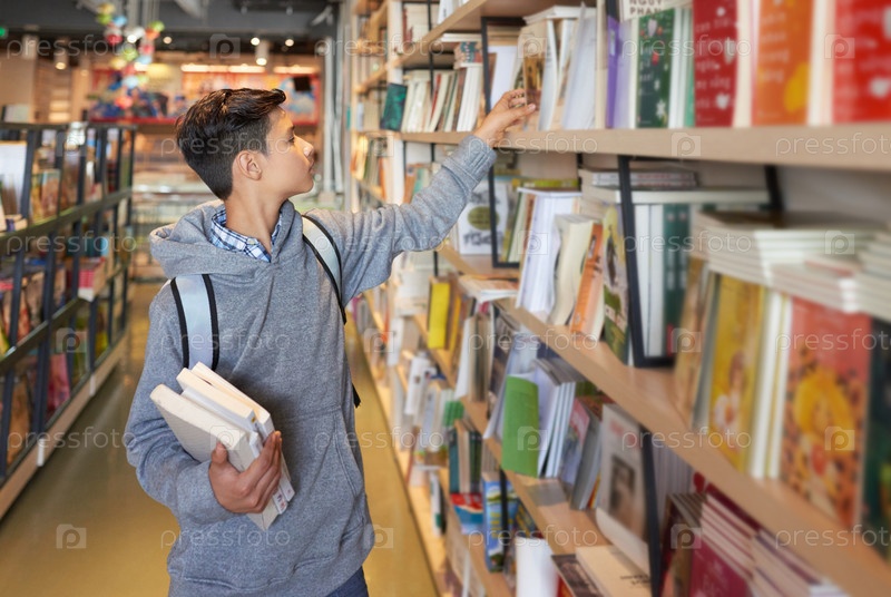 Студент в библиотеке выбирает книги