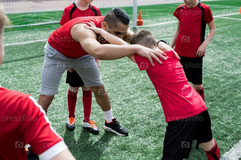 Юниорская команда растягивается во время практики