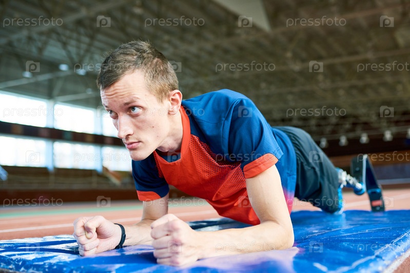 Мотивированный спортсмен-инвалид на тренировке