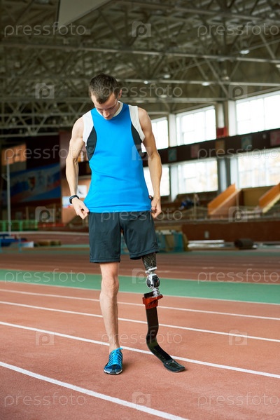 Инвалидный бегун на трассе в стадионе