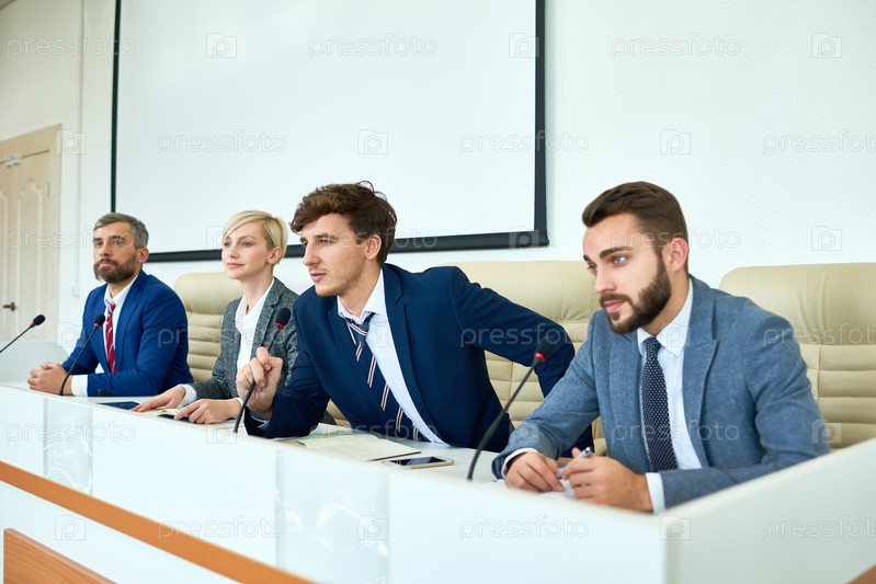 Молодой политик выступает на пресс-конференции