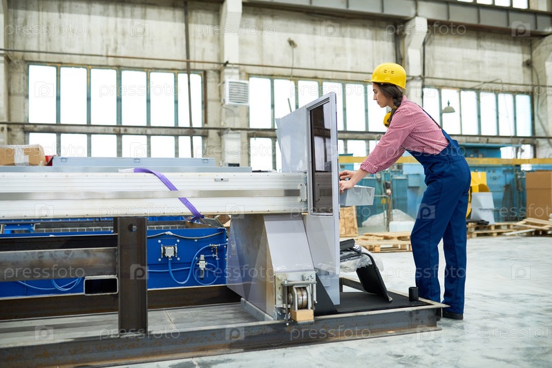 Женщина, работающая на оборудовании для резки плазмы