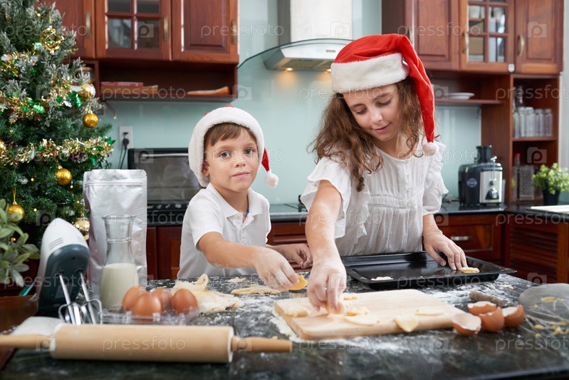 Дети пекут печенье
