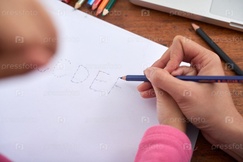 Урожай рук женщины и девочки рисующее письмо