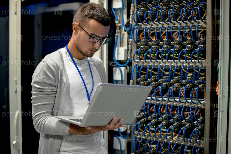 Молодой инженер Управляющий суперкомпьютером Серверы