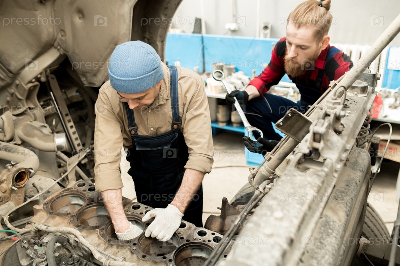 Автомеханик, ремонтирующий грузовик
